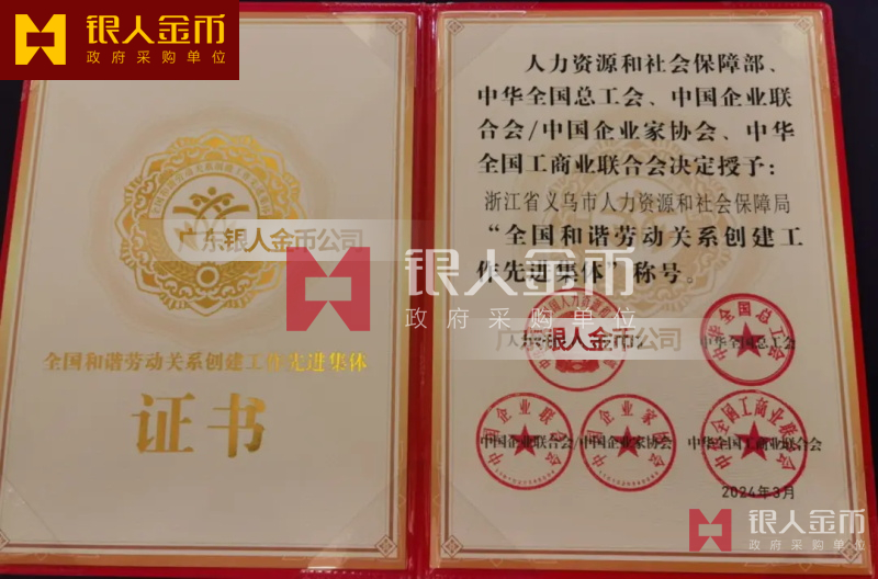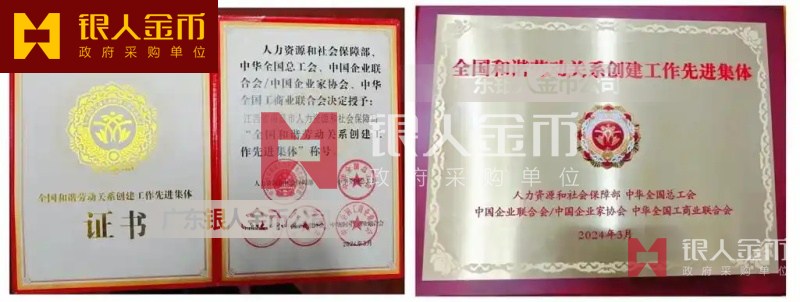全國和諧勞動關(guān)系創(chuàng)建工作先進(jìn)集體”稱號獎牌、證書