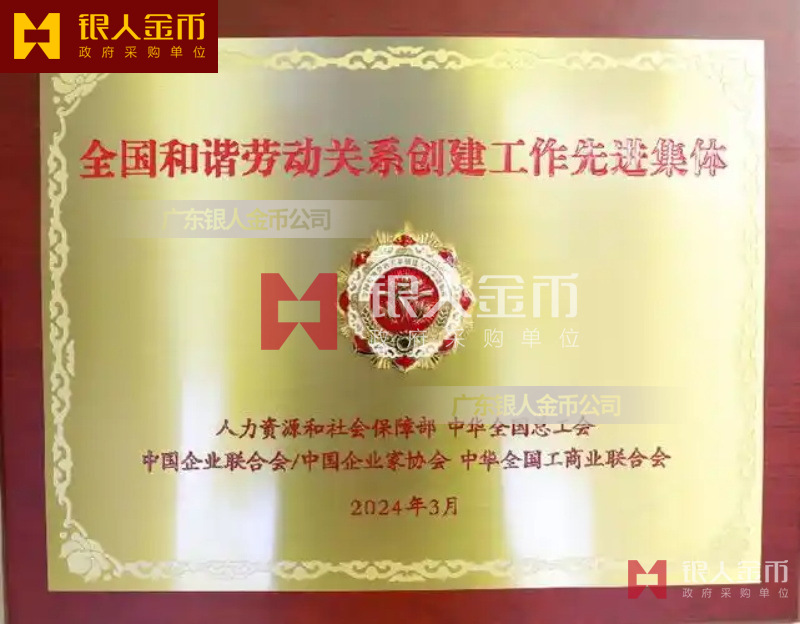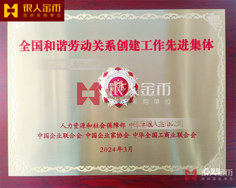 人社部全國和諧勞動關(guān)系創(chuàng)建工作先進(jìn)集體獎牌證書牌匾銅牌(圖)