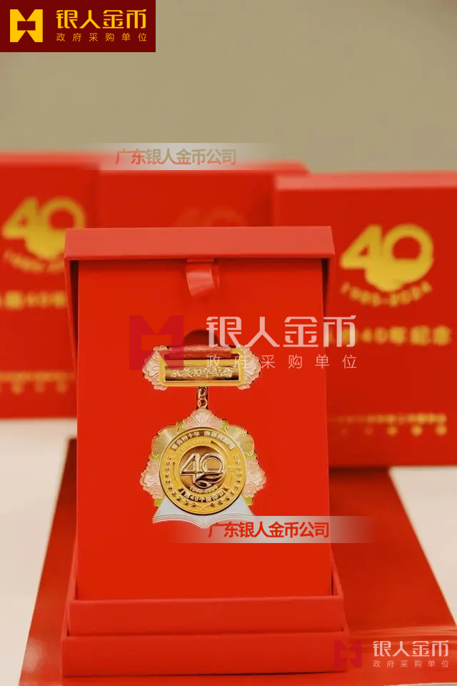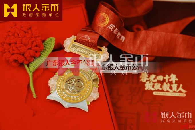 這枚珍貴的紀(jì)念章為廣東銀人金幣公司-廣州恒帆徽章廠制造;選取金色、黃色、粉色、藍(lán)色、綠色五種和諧明快的色彩;設(shè)計(jì)以成都市市花、市樹為靈感來源,將芙蓉花和銀杏葉環(huán)繞在紀(jì)念章周圍,中間圖案以數(shù)字“40”為主體,數(shù)字旁的綠葉代表著教師甘為人梯的高尚精神,下方展開的書籍代表著教書育人的職業(yè)生涯,麥穗則代表著成都教育行業(yè)的繁榮以及城市對教師的祝福。