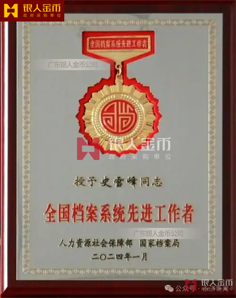 國家檔案局全國檔案系統(tǒng)先進集體獎牌證書和先進工作者獎?wù)伦C書勛章紀念章證書(圖)