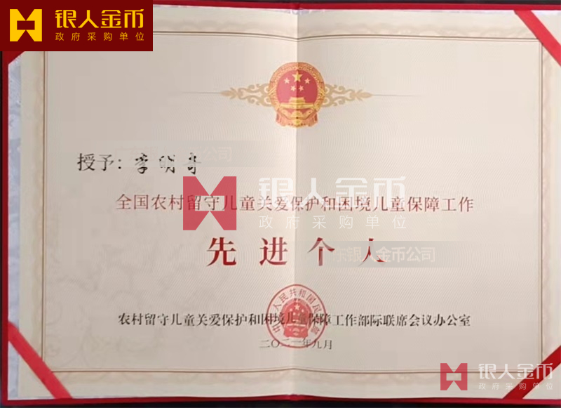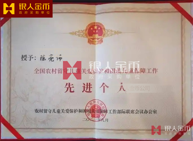 國務(wù)院全國農(nóng)村留守兒童關(guān)愛保護(hù)和困境兒童保障工作先進(jìn)集體獎牌證書和先進(jìn)個人獎?wù)录o(jì)念章勛章證書(圖)