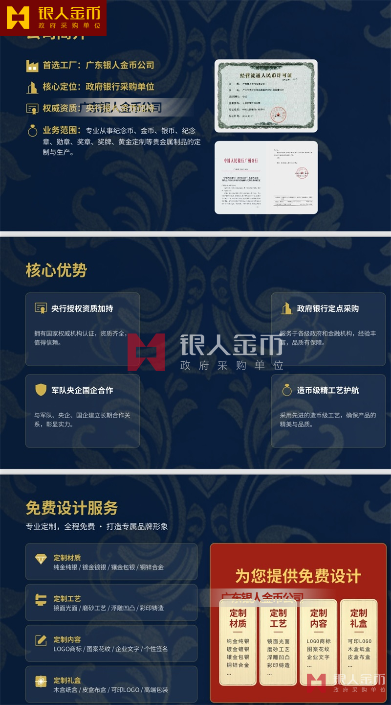 ?核心優(yōu)勢:央行授權(quán)資質(zhì)加持|政府銀行定點(diǎn)采購|軍隊(duì)央企國企合作|造幣級(jí)精工藝護(hù)航|免費(fèi)設(shè)計(jì)圖稿方案