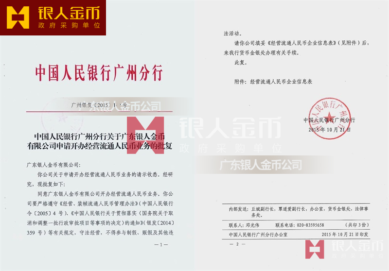 廣東銀人金幣公司 (政府銀行采購單位)