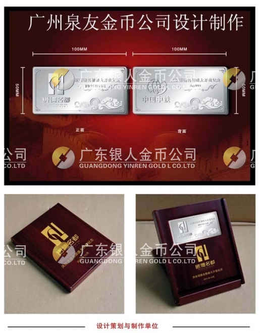 廣東銀人金幣公司承接客戶個性化定制的金銀幣、金銀章、金銀條、金銀牌、金銀盤均由國家質(zhì)監(jiān)部門、嚴格檢測、權(quán)威鑒定: