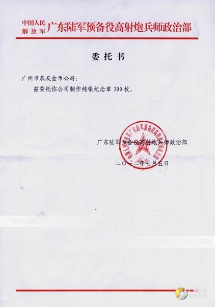 廣東省軍區(qū)某師加工定做銀幣定制加工純銀紀(jì)念幣