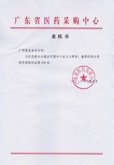 (廣東省某單位紀(jì)念銀章定做檢測證書)