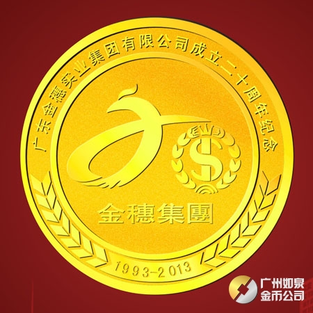 (廣東金穗集團(tuán)成立20周年金質(zhì)紀(jì)念章定做,紀(jì)念徽章定制)