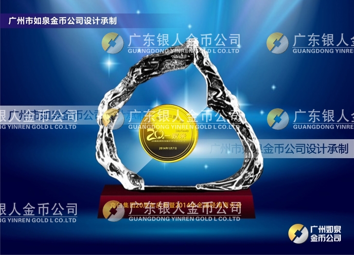 定制廣州立白集團(tuán)20周年慶純金幣鑲嵌水晶擺件鑲金紀(jì)念幣