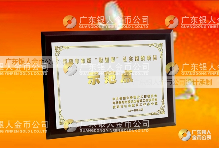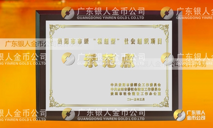 廣東銀人金幣公司設(shè)計制作承接中共貴陽市委、民政局、財政局、群工委、中共貴陽市委社會建設(shè)工作委員會、貴陽市社會建設(shè)工作辦公室表彰樞紐型社會組織項目榮譽(yù)獎狀、先進(jìn)集體獎牌、先進(jìn)單位獎牌、先進(jìn)個人牌匾、高檔鈦金獎牌定制。