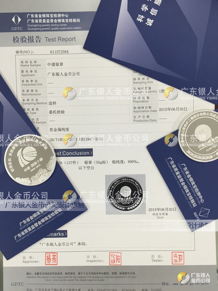廣東銀人金幣公司承接客戶個(gè)性化定制的金銀幣、金銀章、金銀條、金銀牌、金銀盤均由國家質(zhì)監(jiān)部門、嚴(yán)格檢測、權(quán)威鑒定: