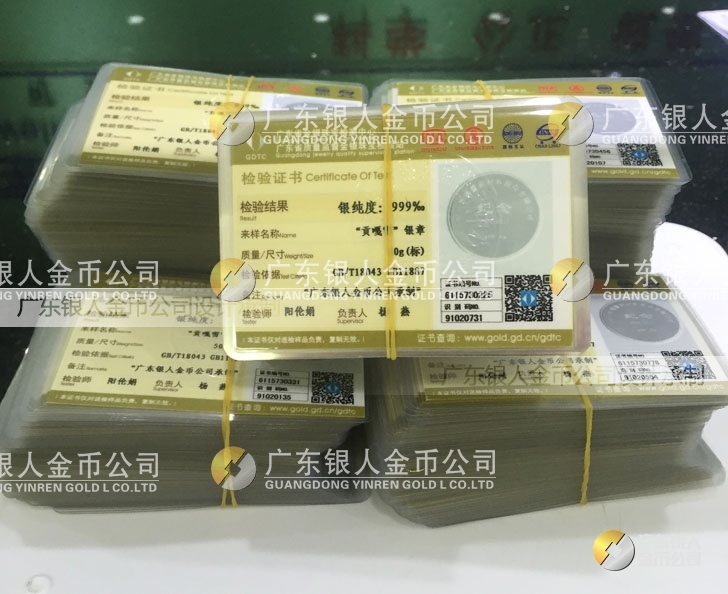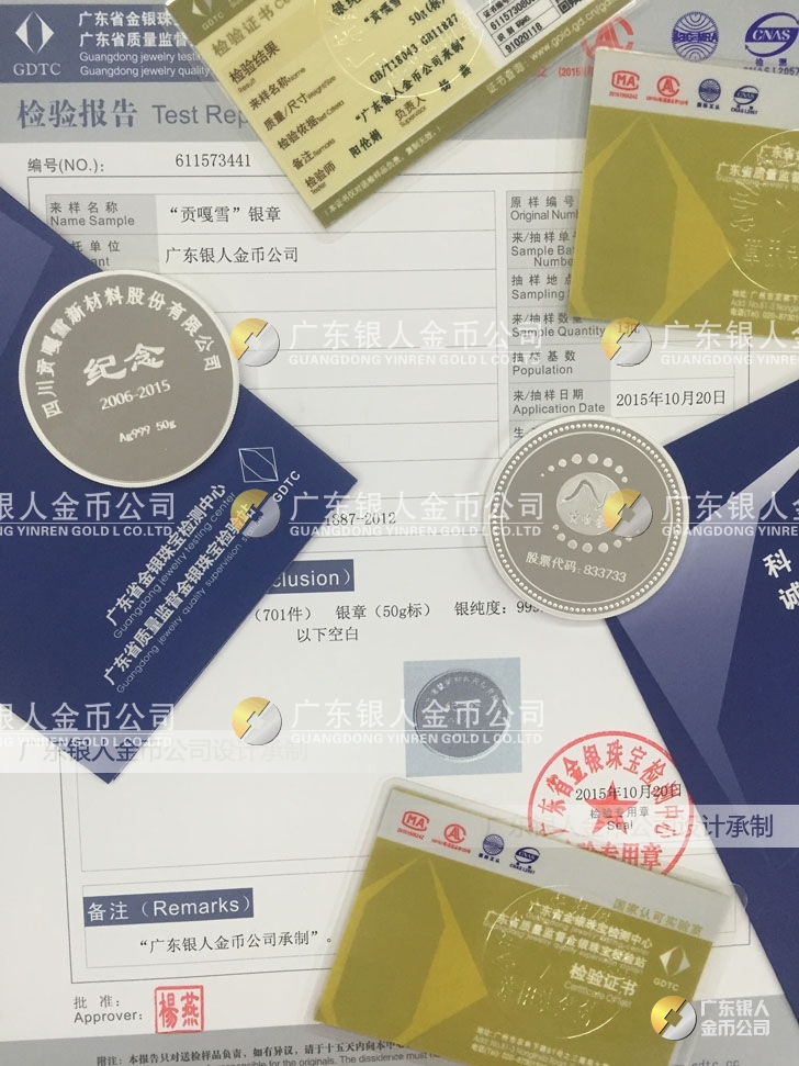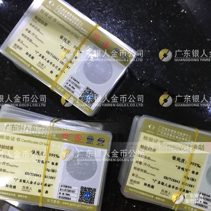 廣東銀人金幣公司承接客戶個性化定制的金銀幣、金銀章、金銀條、金銀牌、金銀盤均由國家質(zhì)監(jiān)部門、嚴(yán)格檢測、權(quán)威鑒定: