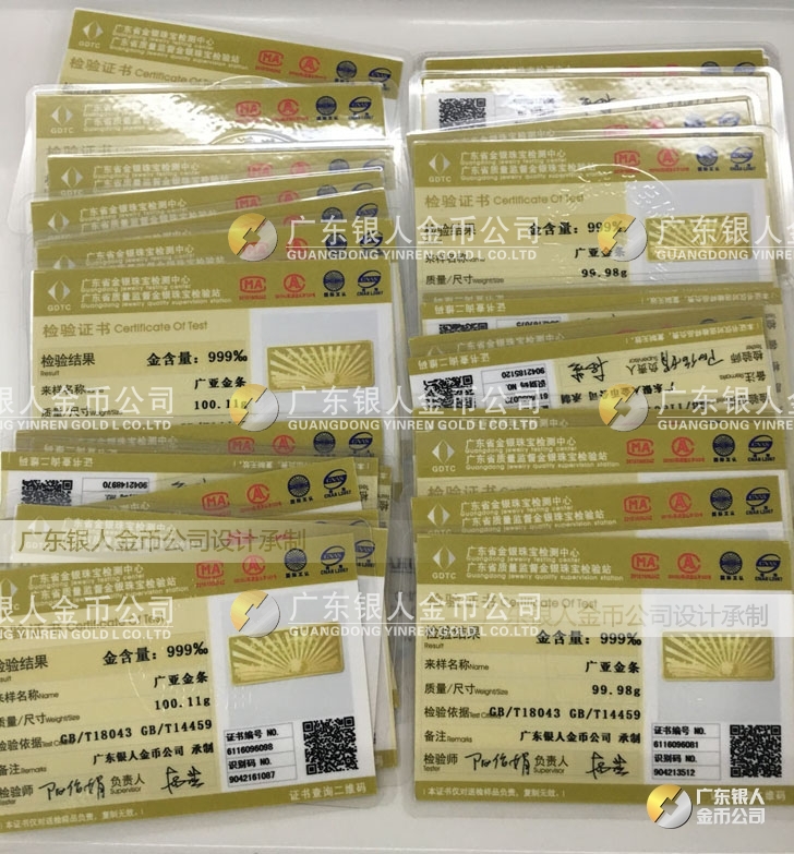 廣東銀人金幣公司承接客戶個(gè)性化定制的金銀幣、金銀章、金銀條、金銀牌、金銀盤(pán)均由國(guó)家質(zhì)監(jiān)部門(mén)、嚴(yán)格檢測(cè)、權(quán)威鑒定:
