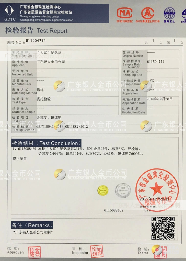 【金銀品質】 國家檢測鑒定、真假防偽查詢