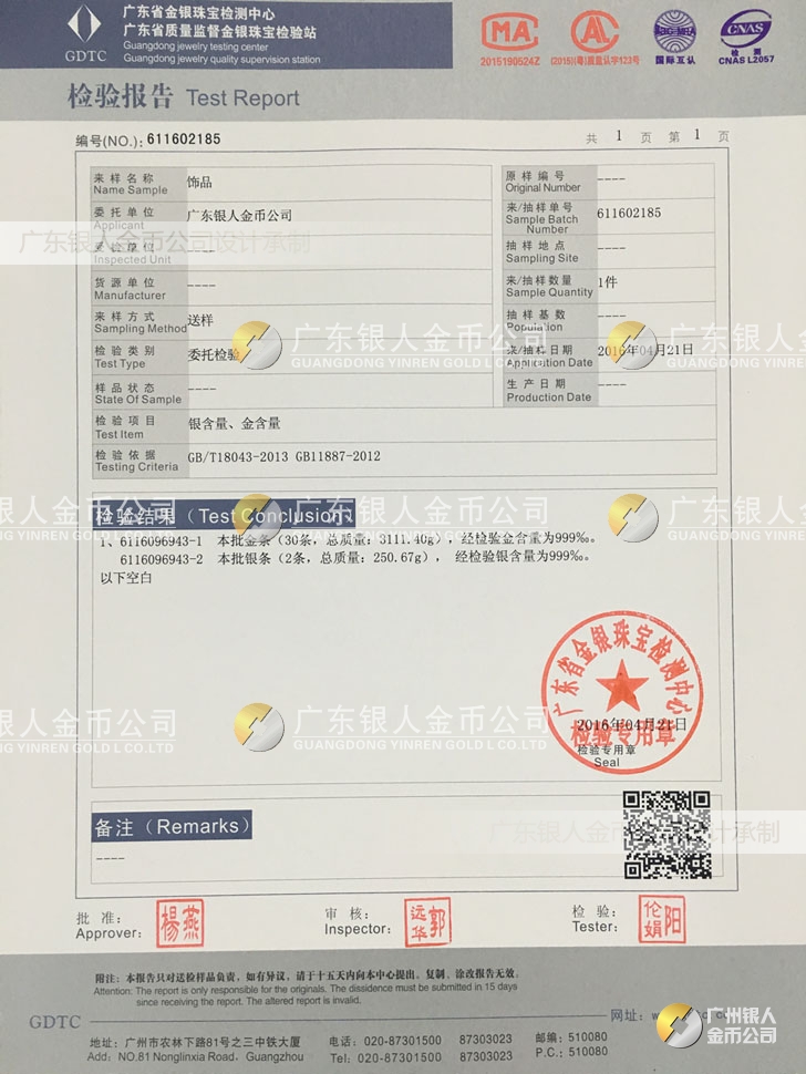 【金銀品質(zhì)】 國家檢測鑒定、真假防偽查詢