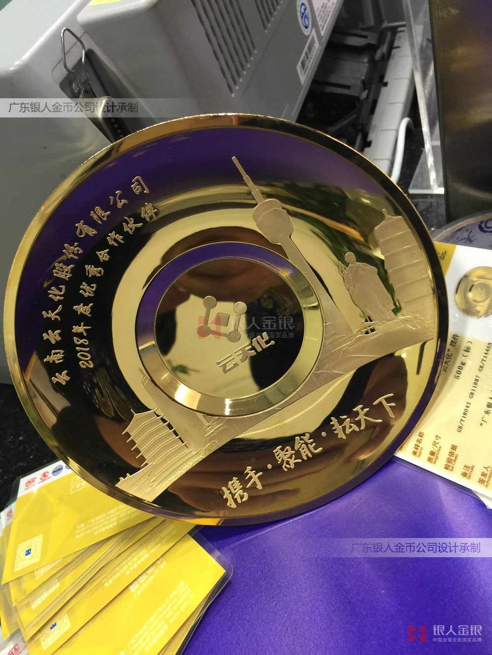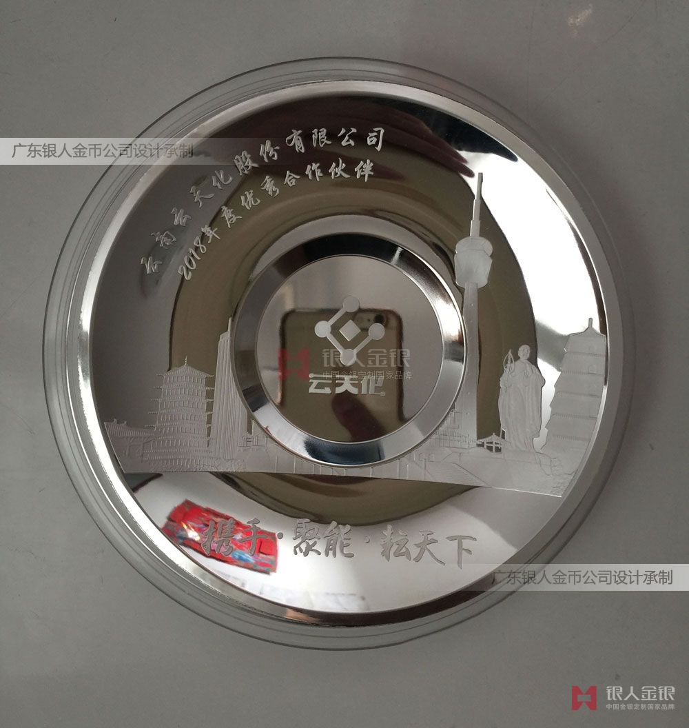 值此紀(jì)念改革開放40周年之際,昆明云南云天化股份有限公司為表彰優(yōu)秀經(jīng)銷商、頒發(fā)授予純金銀紀(jì)念盤,以資鼓勵(lì)。