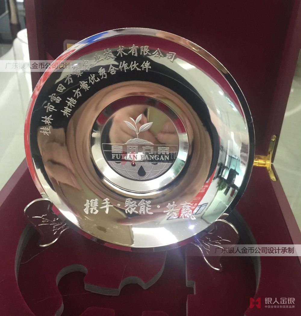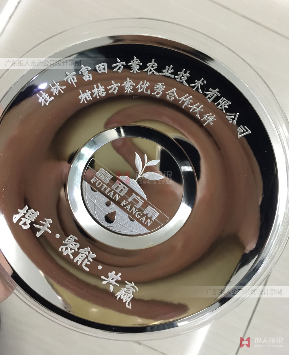 廣西壯族自冶區(qū)桂林富田科技公司值此公司成立周年慶典之際,制作紀念盤制作、銀盤制作、獎盤制作、獎牌定制。