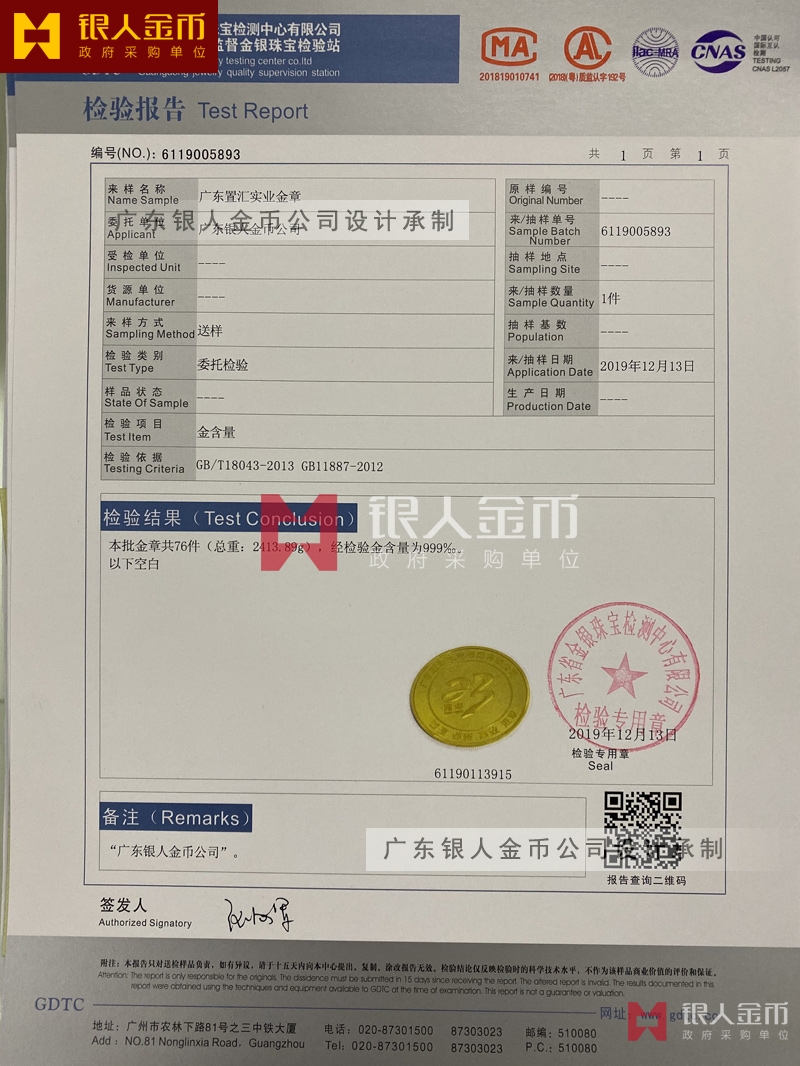【金銀品質】 國家檢測鑒定、真假防偽查詢