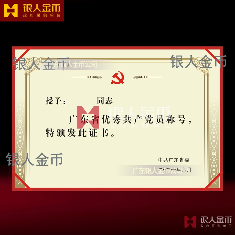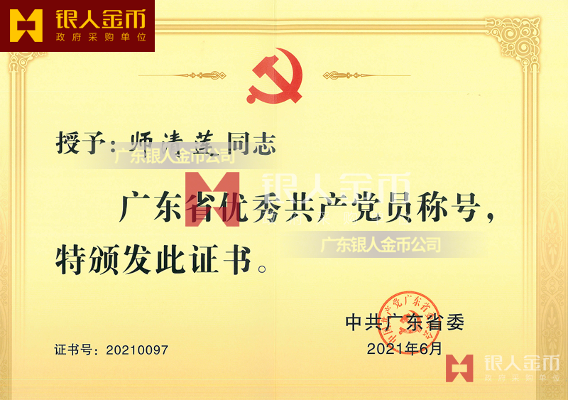 中共廣東省委組織部兩優(yōu)一先獎牌獎章證書優(yōu)秀共產(chǎn)黨員獎勵證書_全省優(yōu)秀黨共產(chǎn)黨員榮譽證書_廣東省優(yōu)秀共產(chǎn)黨員榮譽稱號榮譽獲獎證書