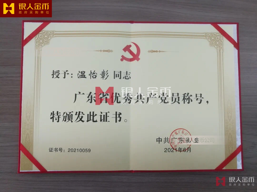 【證書制作】 廣東銀人金幣公司-獎勵證書制作廠家