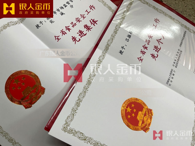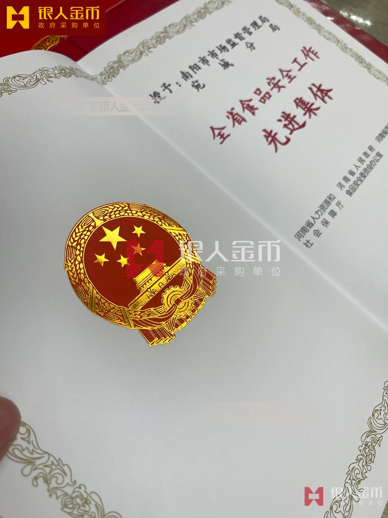 【證書制作】 廣東銀人金幣公司-獎勵證書制作廠家