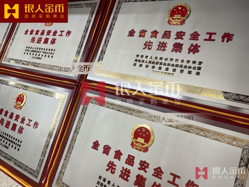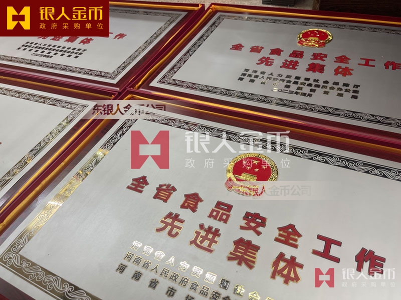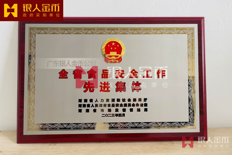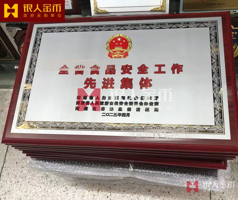 河南省政府表彰食品安全先進(jìn)集體獎(jiǎng)牌訂制_食品安全先進(jìn)集體牌匾制作_高檔獎(jiǎng)牌定制_先進(jìn)集體匾額制做_政府單位記功獎(jiǎng)牌制作_政府部門榮譽(yù)稱號(hào)獎(jiǎng)牌定制