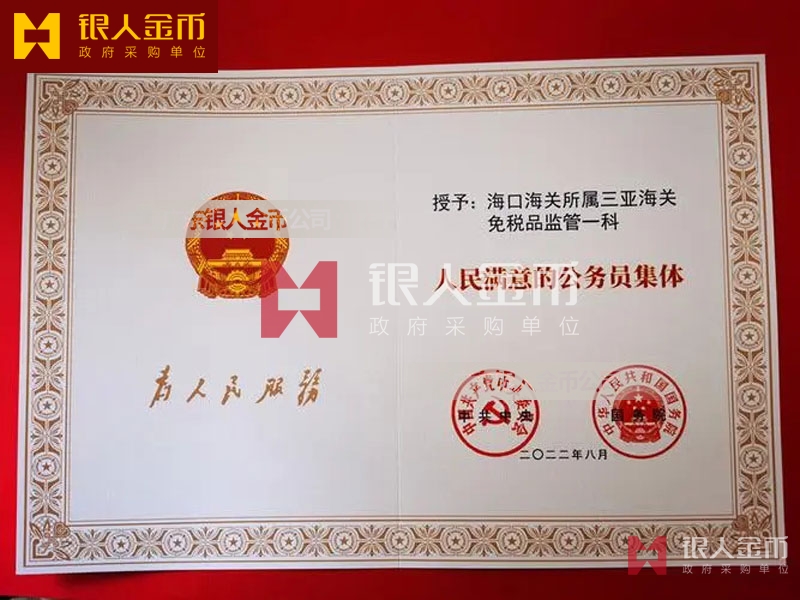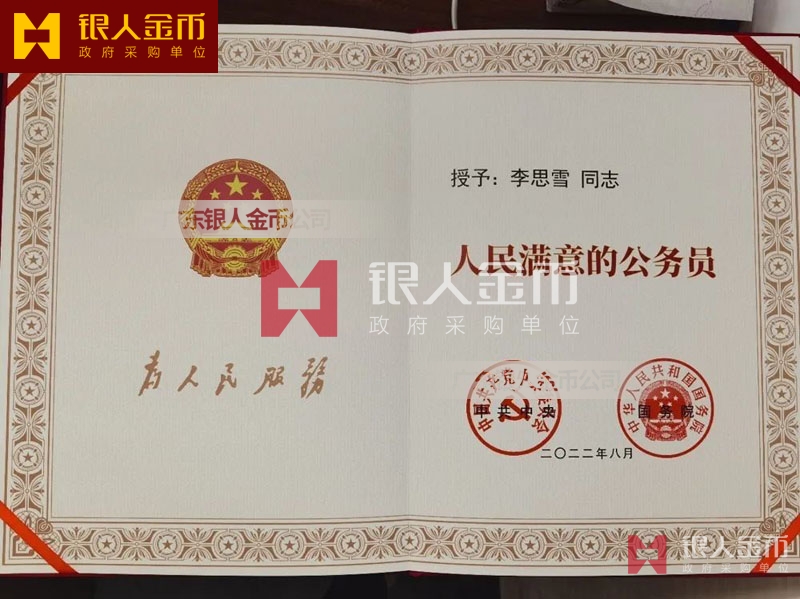 【公務員獎勵證書制作】 廣東銀人金幣公司-獎勵證書定制