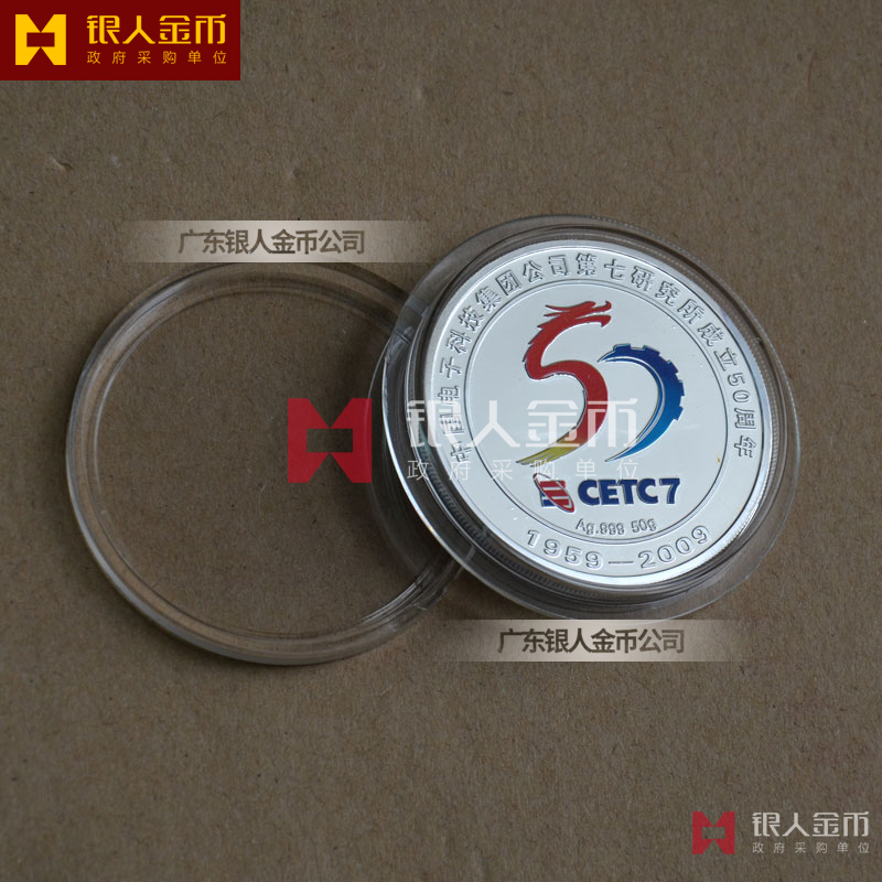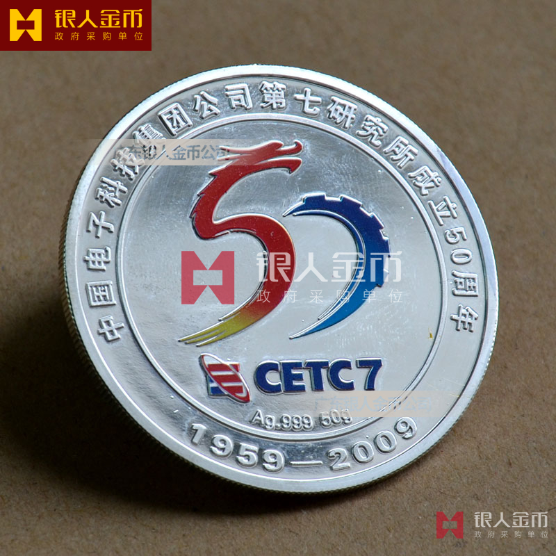 中國電子科技集團(tuán)公司第七研究所成立五十周年紀(jì)念幣定制_周年紀(jì)念章定制_廣州足銀紀(jì)念章定制_廣州純銀銀章定制_廣州足銀銀章定制_廣州銀幣定制
