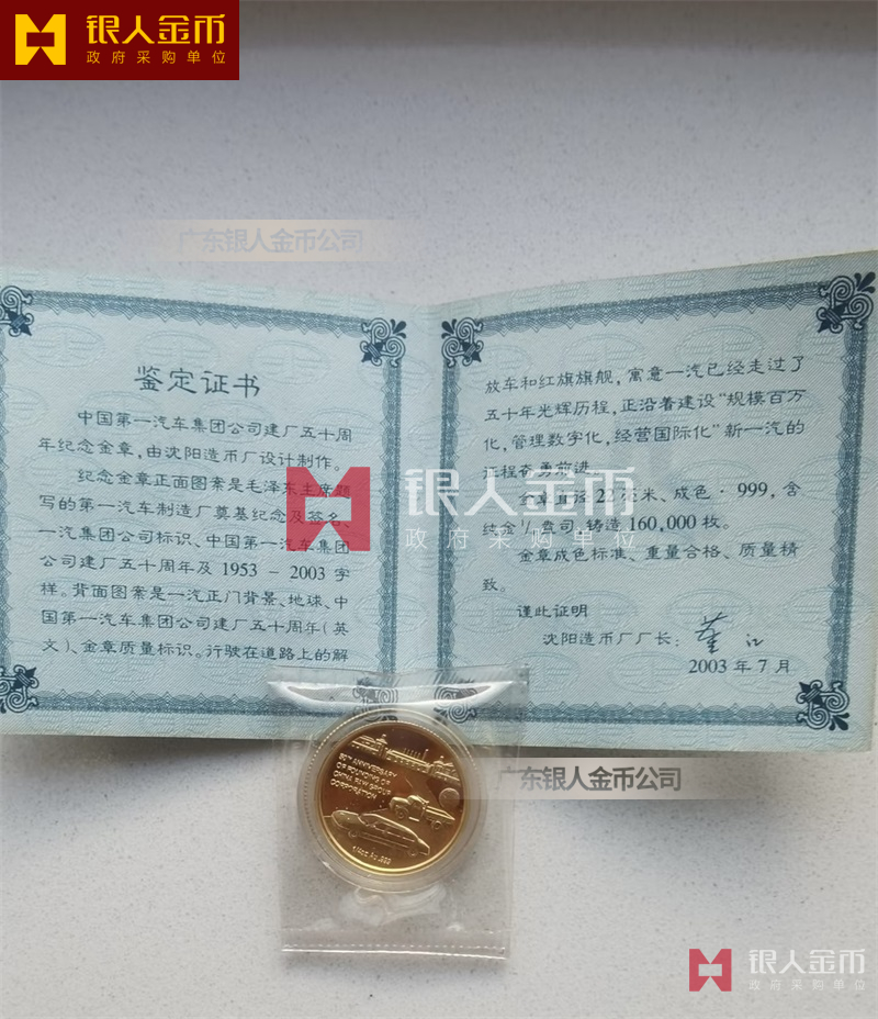 吉林長春中國一汽建廠50周年紀(jì)念金幣定制_純金紀(jì)念幣定制_定制純金紀(jì)念章_純金金幣定制_黃金紀(jì)念幣定制